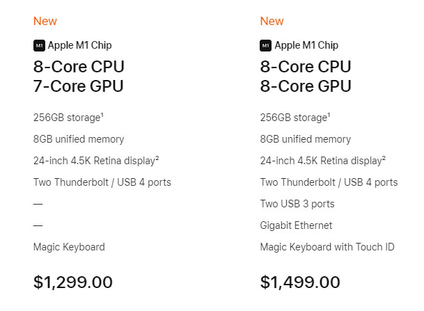 Compared to the previous low-end iMac you have a much faster CPU, a much much faster GPU, a powerful AI chip, much improved camera, USB-C, and a much larger monitor with 36% more pixels than all the 4K displays that you can buy.