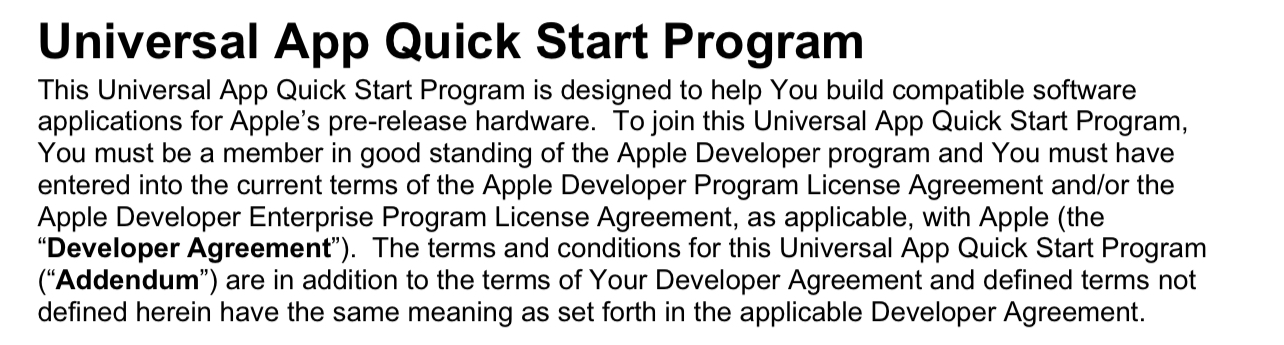 Luckily we don’t have to figure that out ourselves. Apple makes it very clear in their terms what the Universal App Quick Start Program is.
