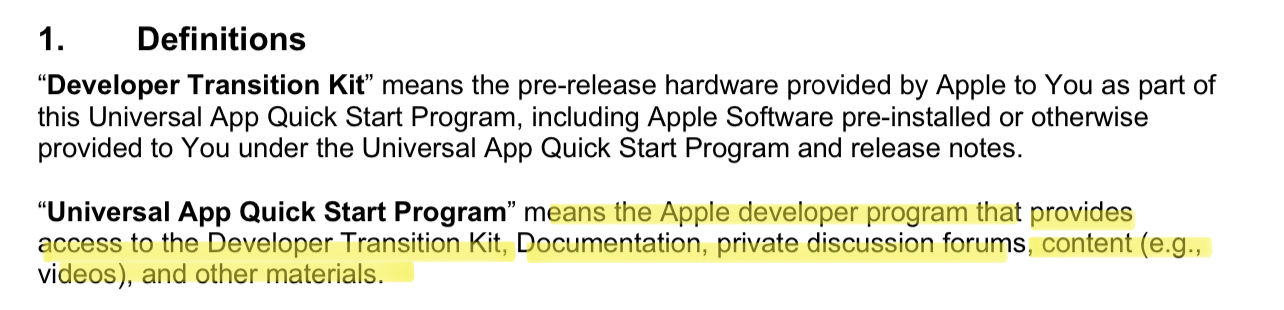 So far we can conclude that the program, the UAQSP, is one thing and has certain ways of ending and we can conclude that the DTK, a single part of said program, has to be returned either when the term for the UAQSP has ended or when Apple requests it before the term has ended.