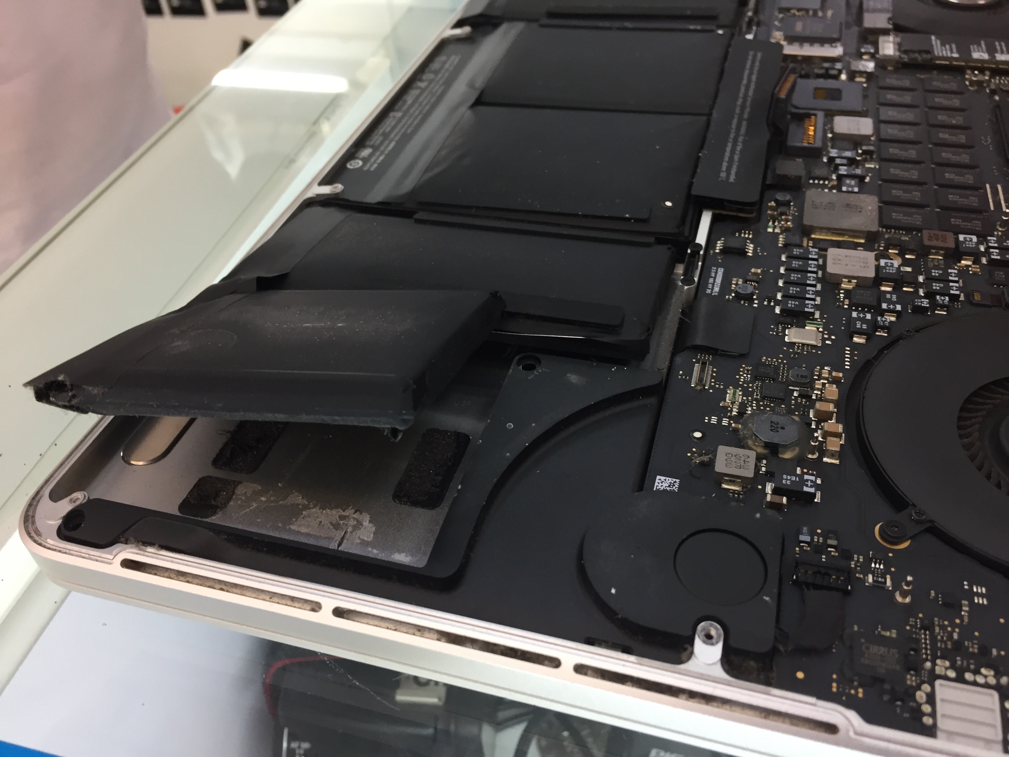 During the past few months first my iPhone 5 battery bulged and the bulging smashed the screen, thereafter an iPod did the same and now my MacBook Pro 15 is bulging, too.