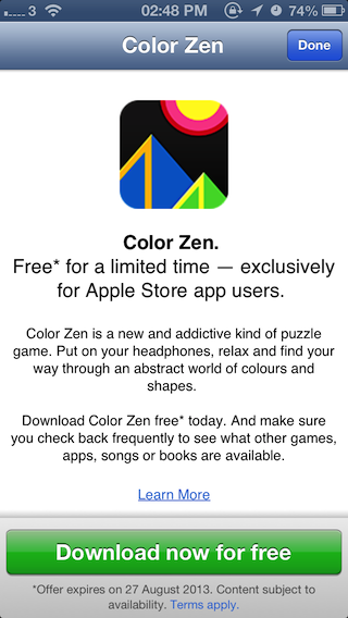Article Link: Apple Begins Offering Free Content in 'Apple Store' iOS App with 'Color Zen'