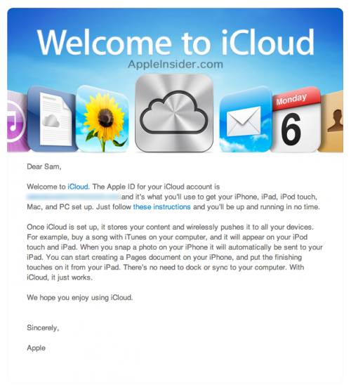 Apple has also sent out some premature iCloud welcome emails. AppleInsider publishes a welcome email that was sent to one of its readers: