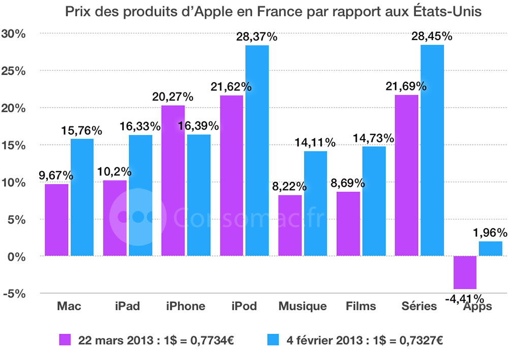 Those factors influence prices to consumers only if and when the seller refuses to lower its markups. With a 61% markup, I think Apple has some wiggle room.