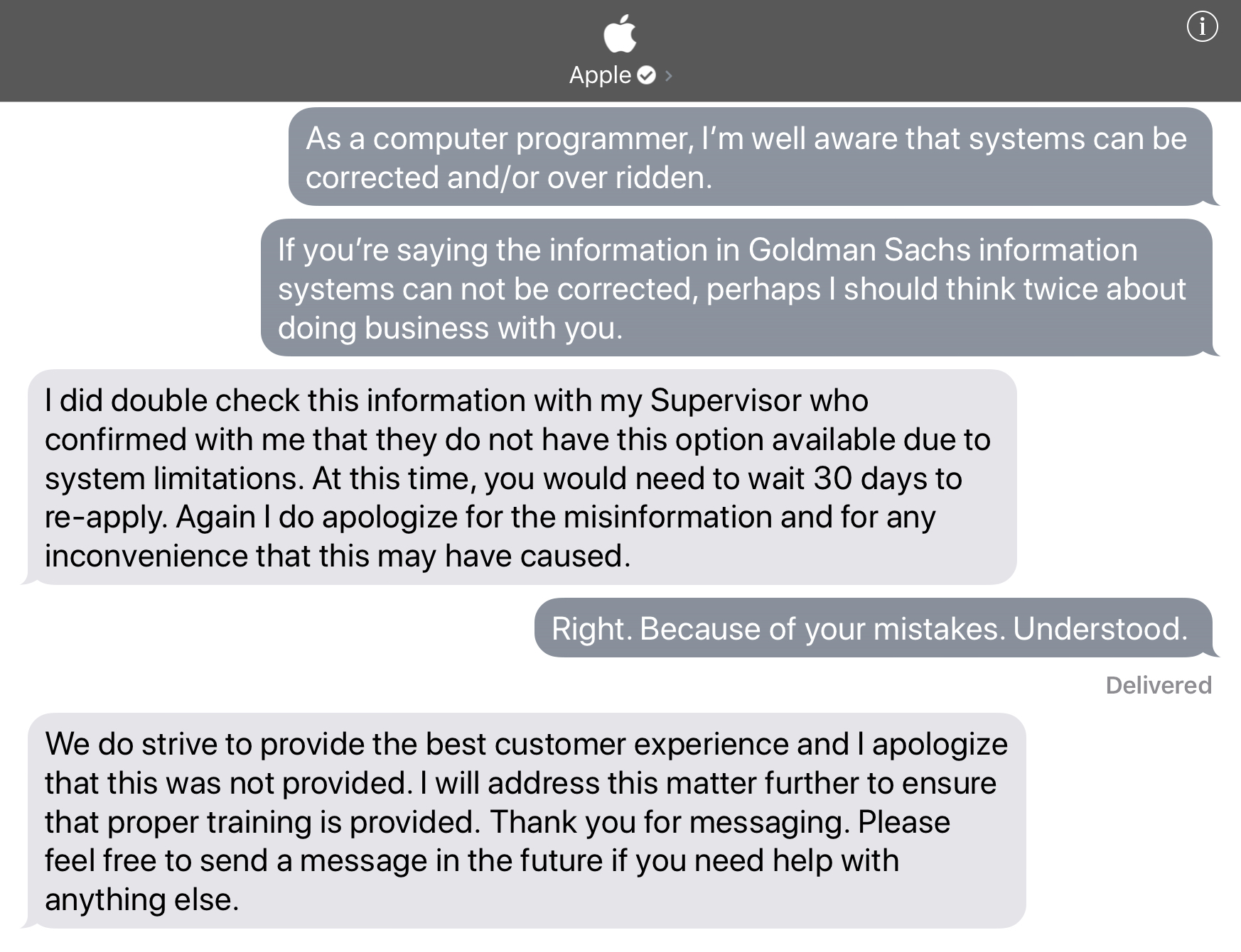 PSA: my Goldman Sachs customer service experience today as a warning to those experiencing this issue.