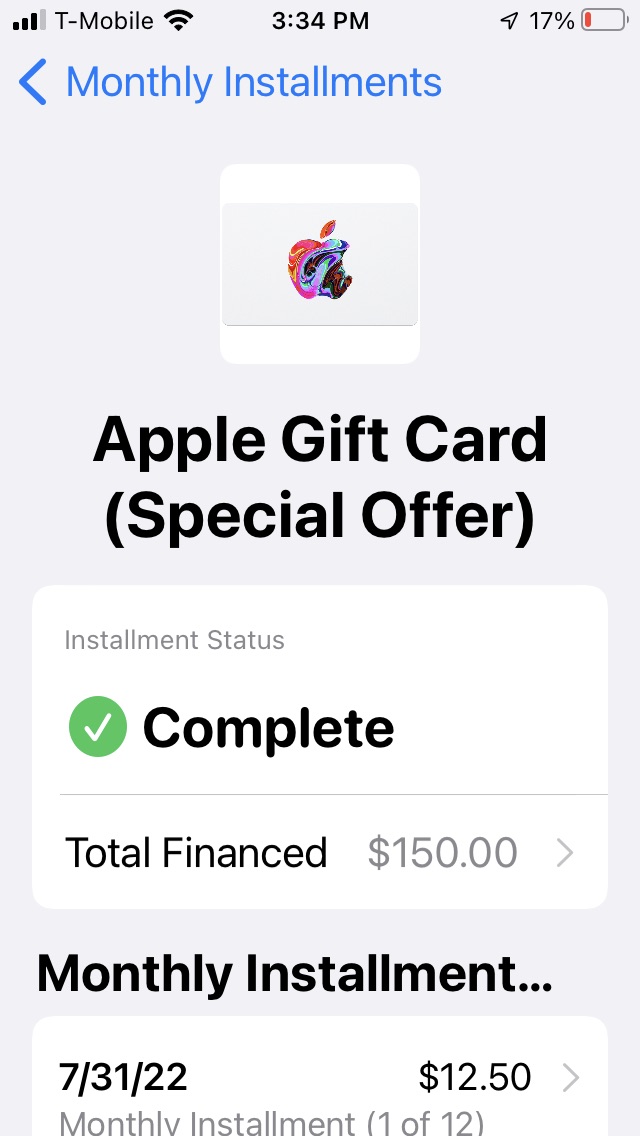 - to pay off an item that is on monthly installments, you cannot just 'make a payment.' you have to go the installments sub menu and select 'pay early' even as your balance shows $0.00 since it does not reflect outstanding installments.