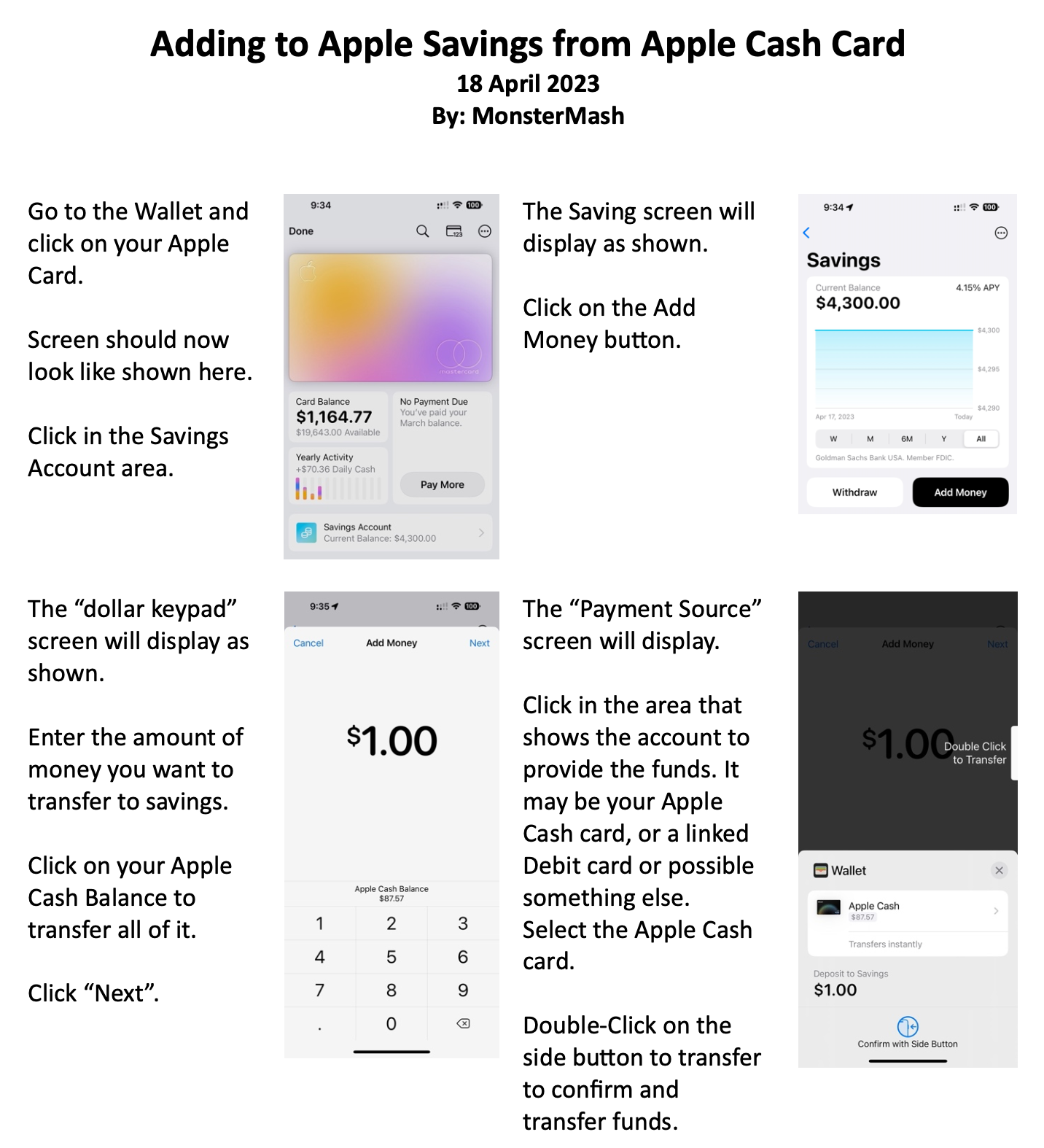 This is a long thread, but is anyone having trouble transferring their Apple Cash to Savings? I can't find the option anywhere.