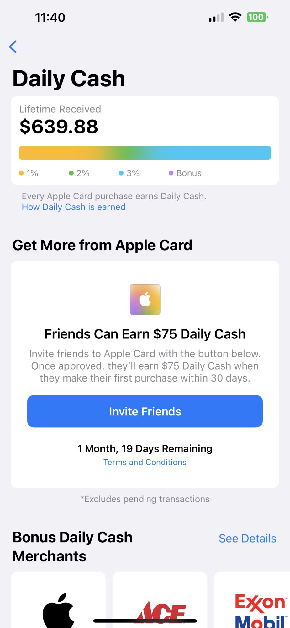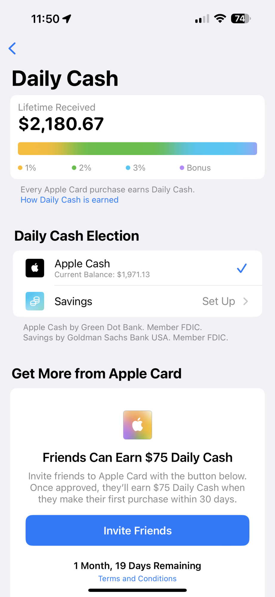 I don't see it yet, but I never knew it shows your lifetime Daily Cash received. And it's completely inaccurate, it says $56.02. I bought a MacBook a few months ago that earned more cash on that alone haha. I wonder if it resets if you restore your device.Go to Apple Card, hit the ... on the top right and choose: Daily Cash.