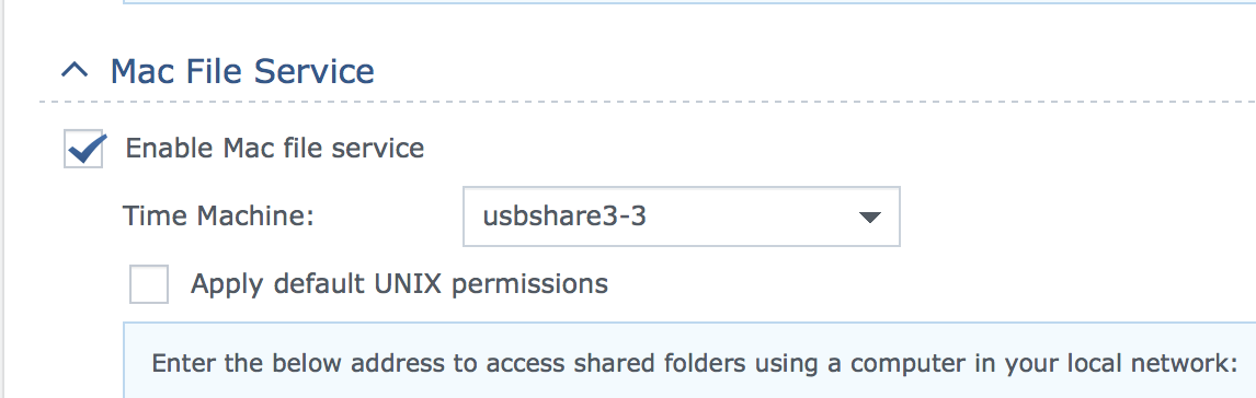 All you need to do is select the shared folder you want to use for time machine backups as in the screenshot, and it then appears on the Mac's disk selection dialog box and I successfully backed up to it