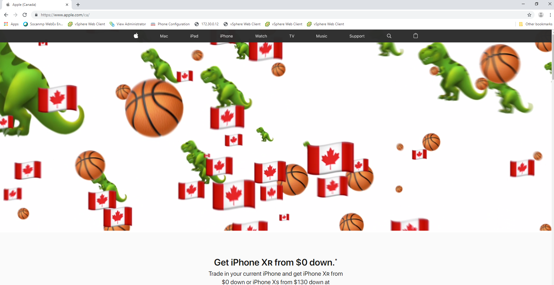 In fact prior to 9AM this morning the Apple.com site (no auto resolving would refresh with Green Dino’s and Raptors ball logo. After 11AM the Apple.com/ca Canadian sure had it while the USA site did not.