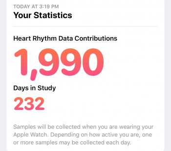 As of August 1, 2018, an enrollment termination date Apple and Stanford first announced when the study launched, enrollment is officially closed. While enrollment has ended, the study does not end until January 31, 2019, and Apple plans to continue collecting data from current participants until the completion of the study.