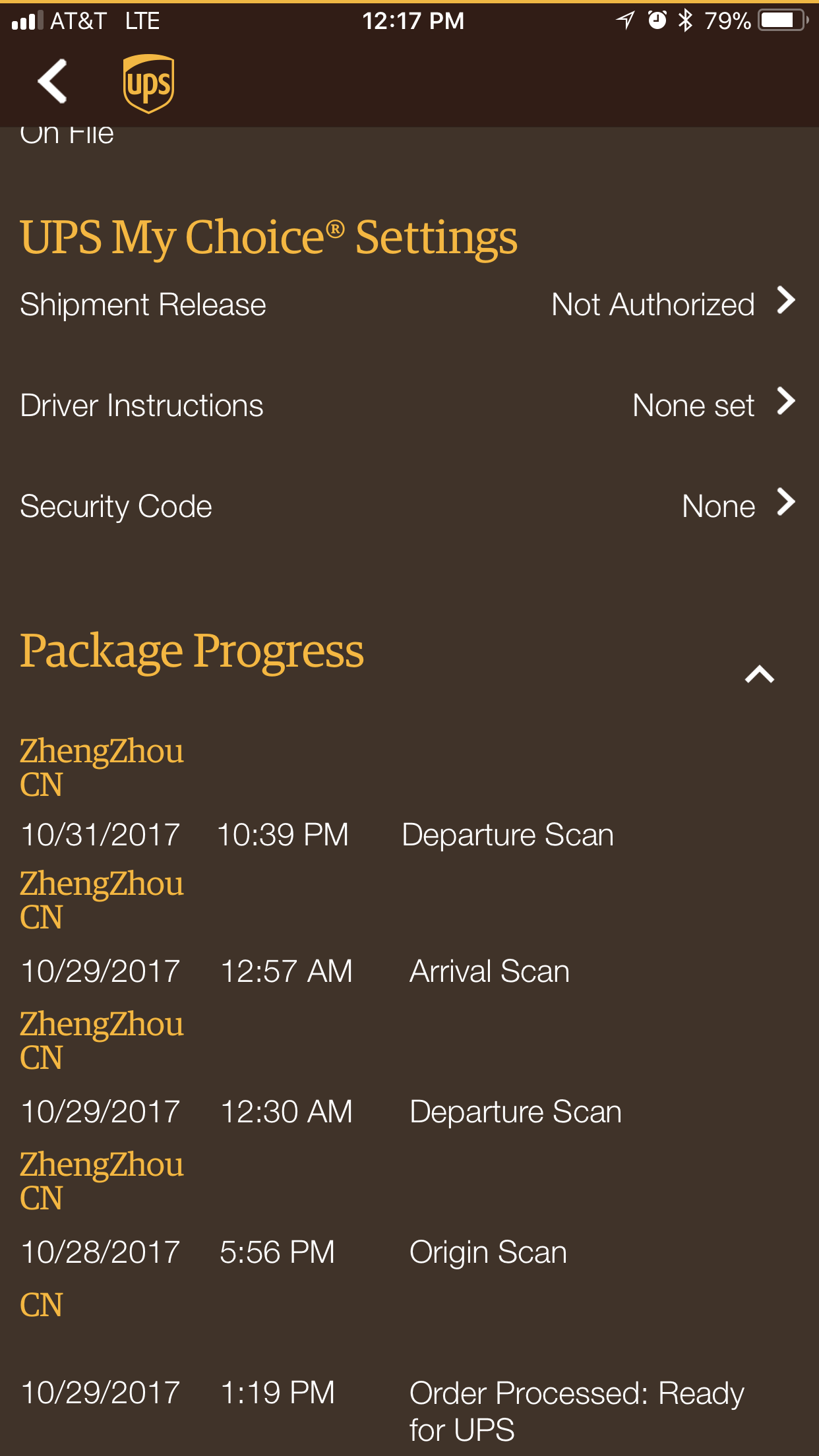 ZhengZhou, China 10/31/2017 10:39 P.M. Departure Scan