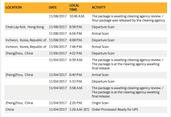 Keep in mind that the UPS tracking times are local to where the package is. For example, I'm on the East Coast so Zheng Zhou China is 13 hours AHEAD of me. My phone had a departed time from Zheng Zhou of Monday 9:13am, which was Sunday 8:13pm EST.