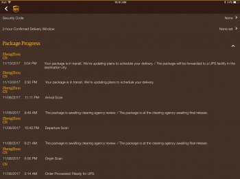 Then you'd be wrong.After 24+ hours of no movement in ZengZhou, there's movement again for my shipment which is now in South Korea. UPS has updated the schedule delivery date from 11/15 to "information is not available at this time". Hopeful that it will be in Alaska tomorrow, although I'm not sure if packages move on the weekend? I'm assuming they don't.