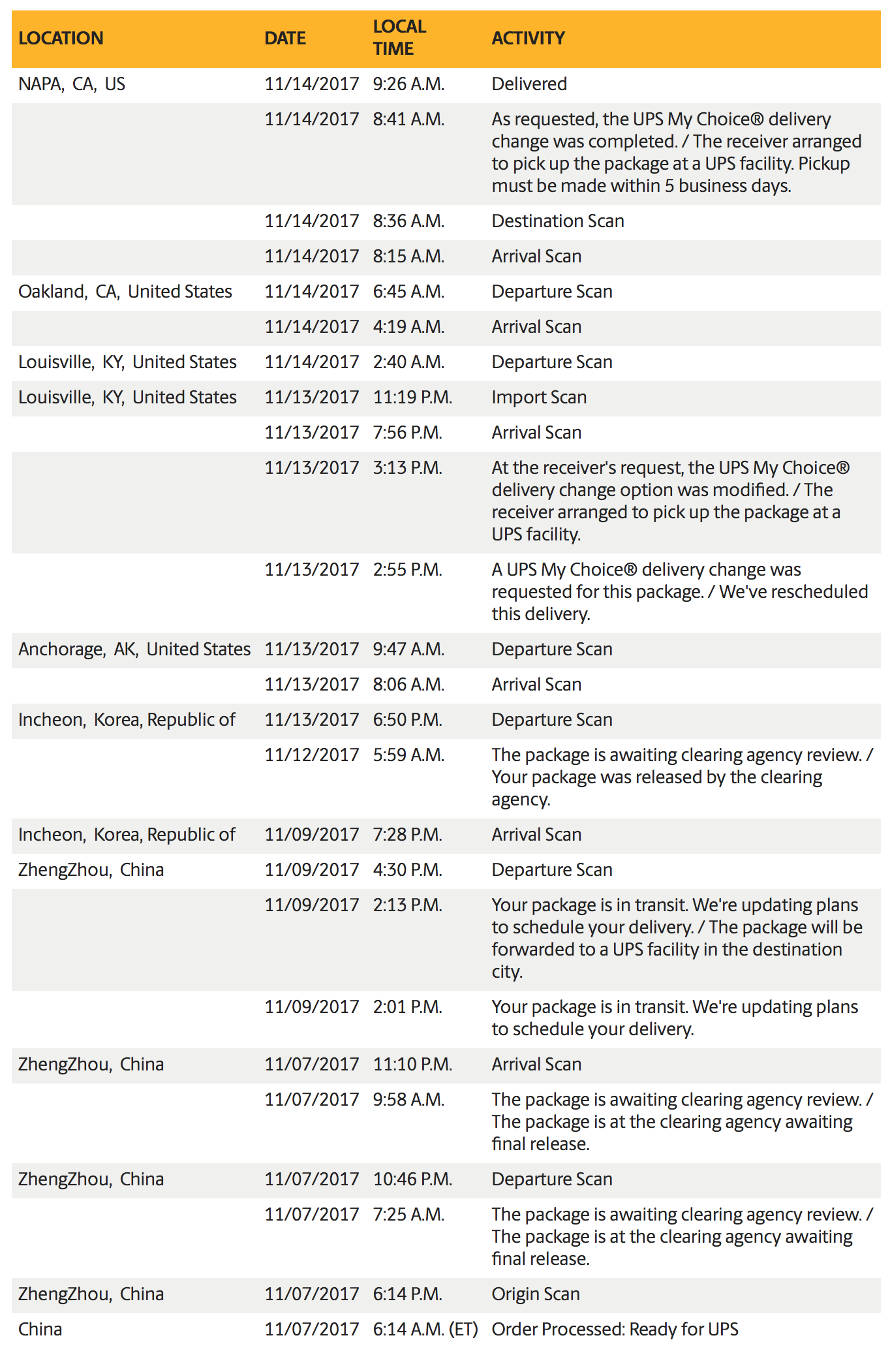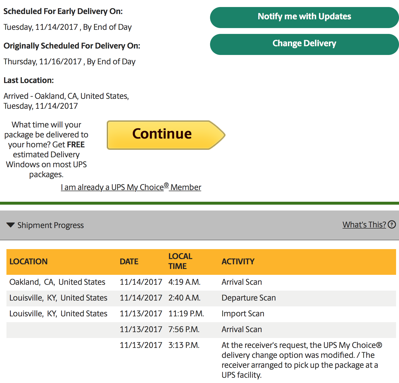 Very strange that my UPS my choice app doesn't show the blow-by-blow read out of the different departures and arrivals like I see you guys posting screenshots of here in this thread. It just shows the next one in line. I would think that app would be more specific.