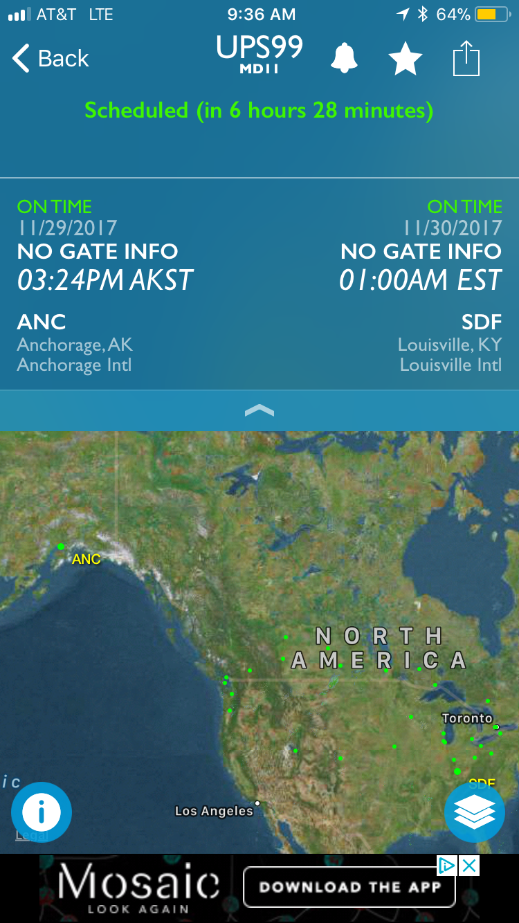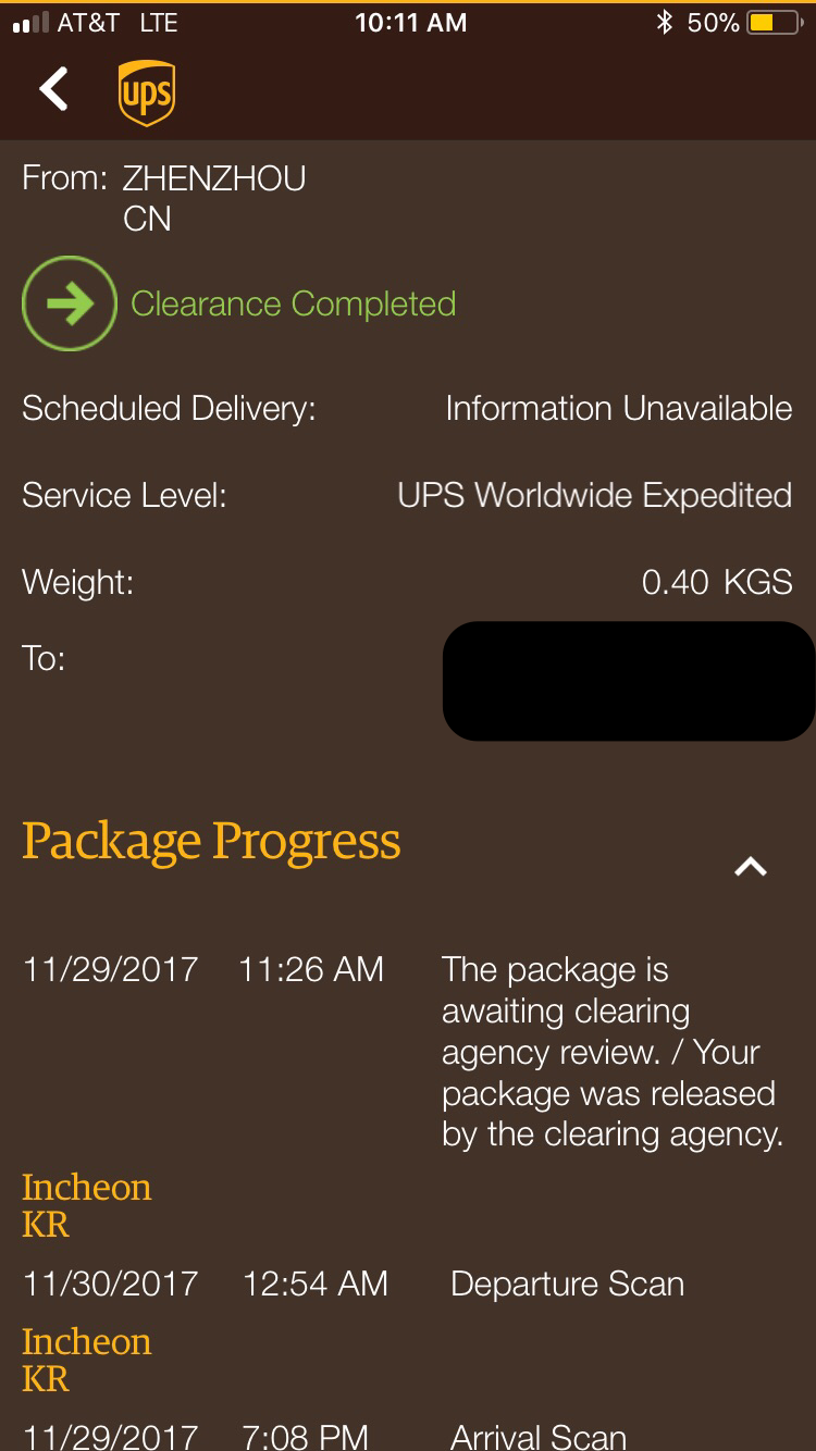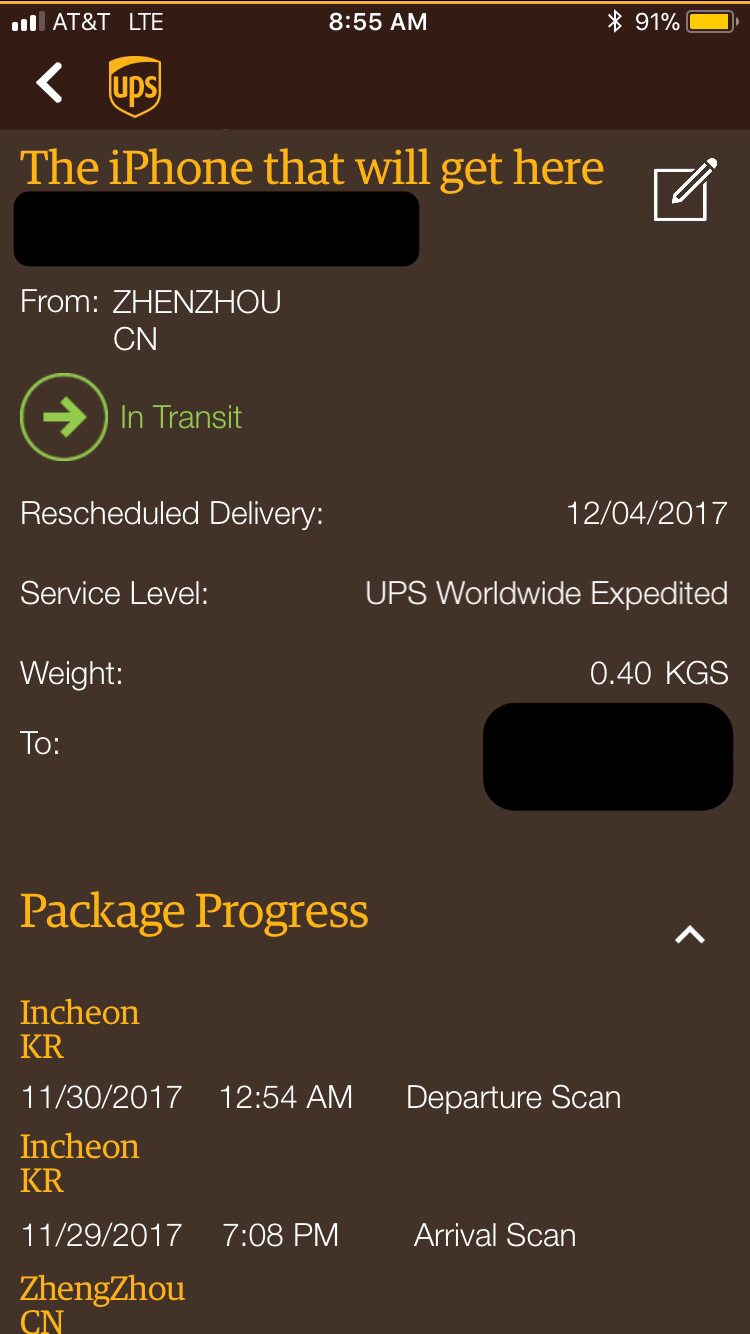 My guess is, our phones will get to Louisville late today or early tomorrow...they have to clear customs again in AK, then put on it's next flight late tonight or early tomorrow to KY, unloaded, sorted and then put on another flight that will end up at your local UPS hub. My guess is sometime on Saturday...and not be delivered till Monday. If it does get to your local hub by Saturday, you can pick it up usually there...but I would advise calling ahead first...