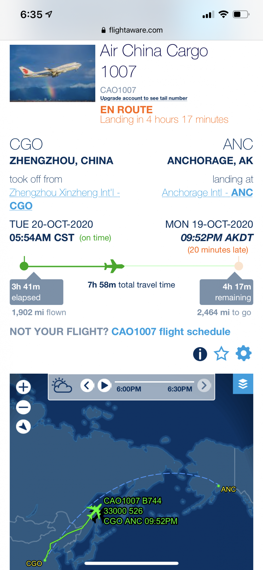 Y'all still going from last night! This thread really grew! Just noticed I'm flying with y'all too.Most of us are on this flight. https://flightaware.com/live/flight/CAO1007/history/20201019/2135Z/ZHCC/PANC