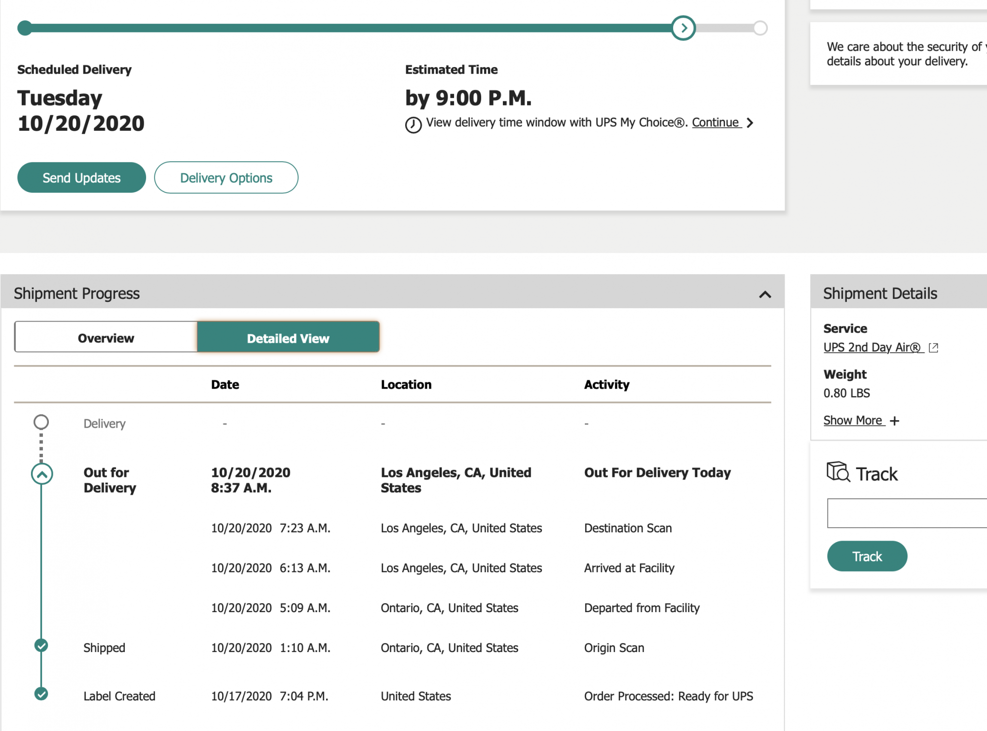 Los Angeles. Also strange is that UPS has erased all the Chinese ports from the tracking history where they used to appear just yesterday.