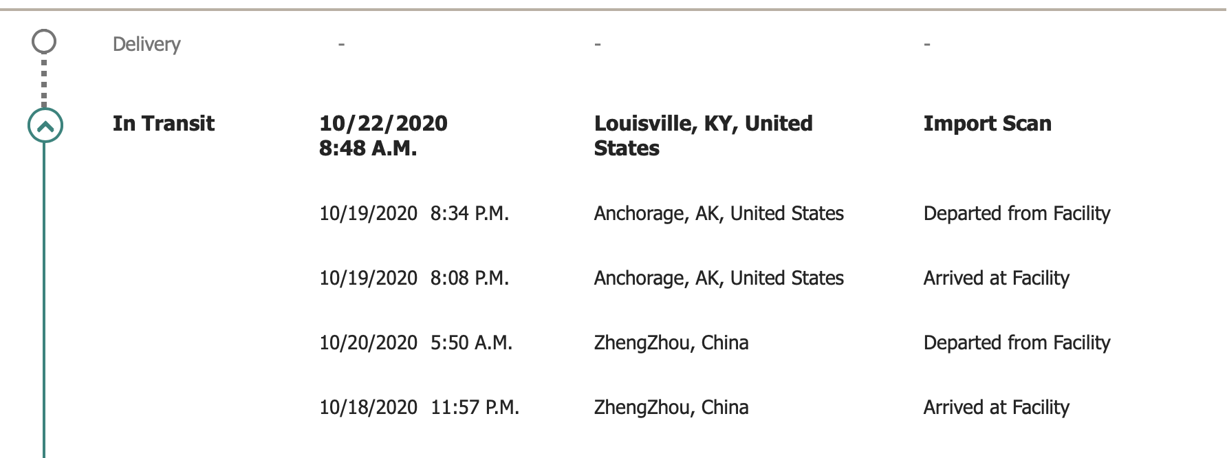 Part of the 10/19 at 8:34 Anchorage gang. Still no Import Scan here yet.
