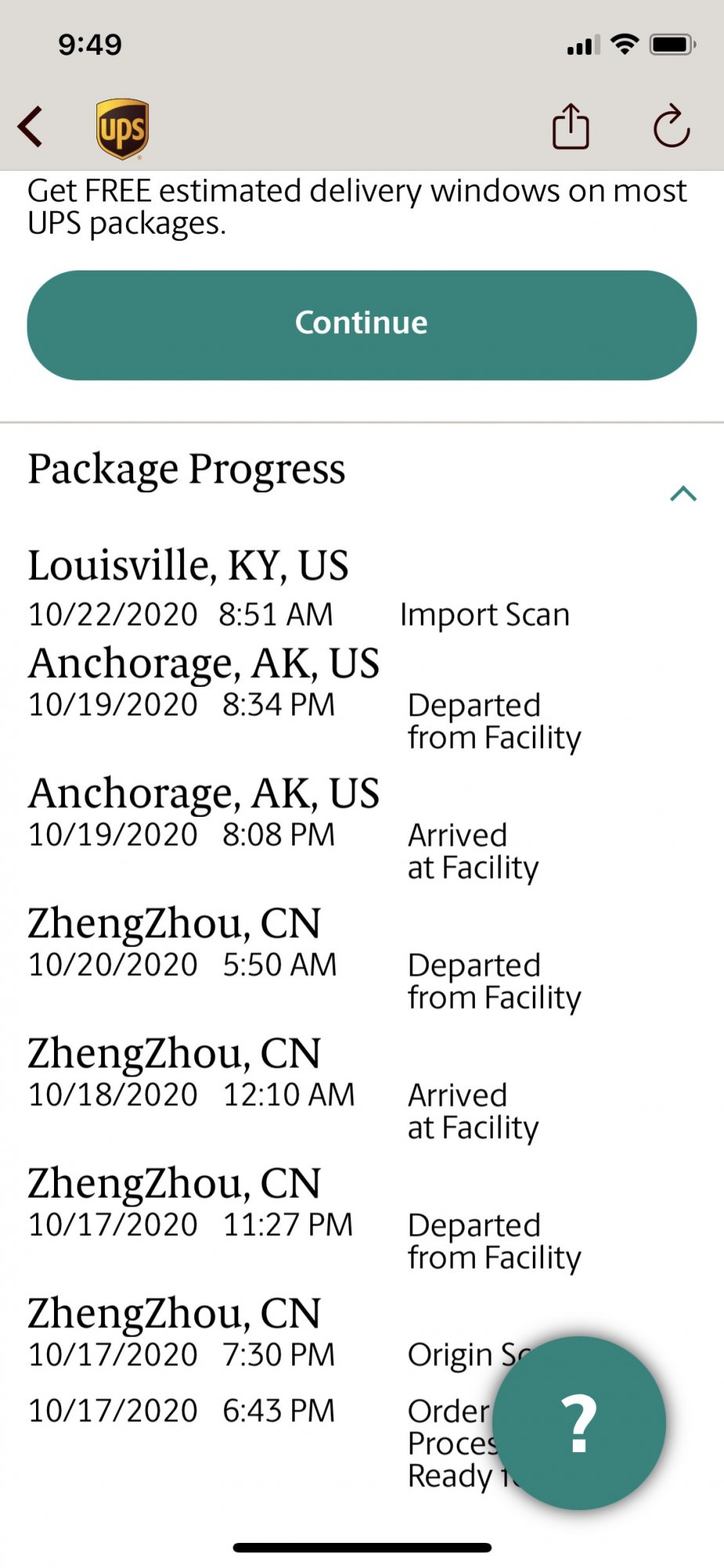 Same situation. Where are you located at?Mine still shows departed AK on 10/19/20 8:34 PM. Apple is now showing shipped and still coming tomorrow.