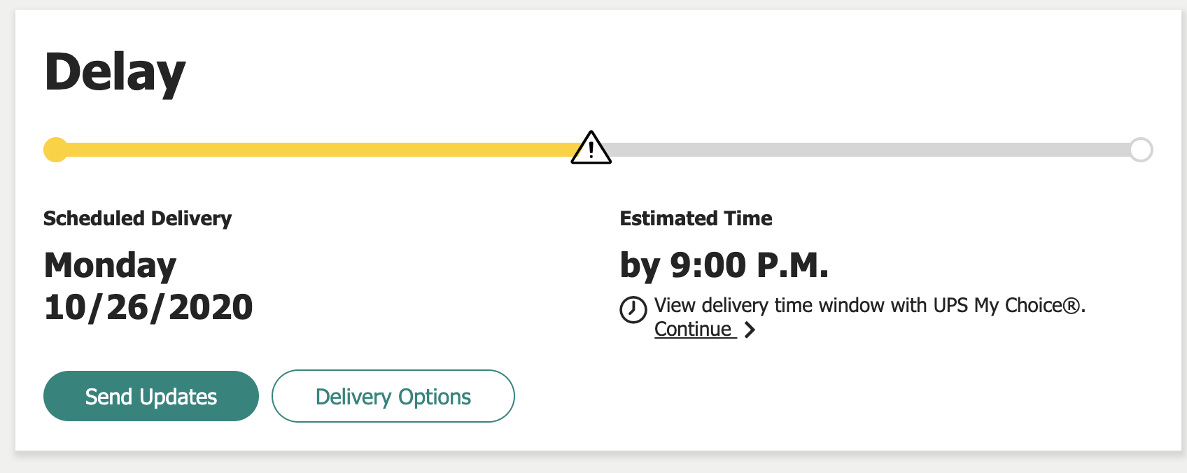 The Apple order status still says delivery for Friday, October 23 but tracking details on UPS says delayed till Monday: