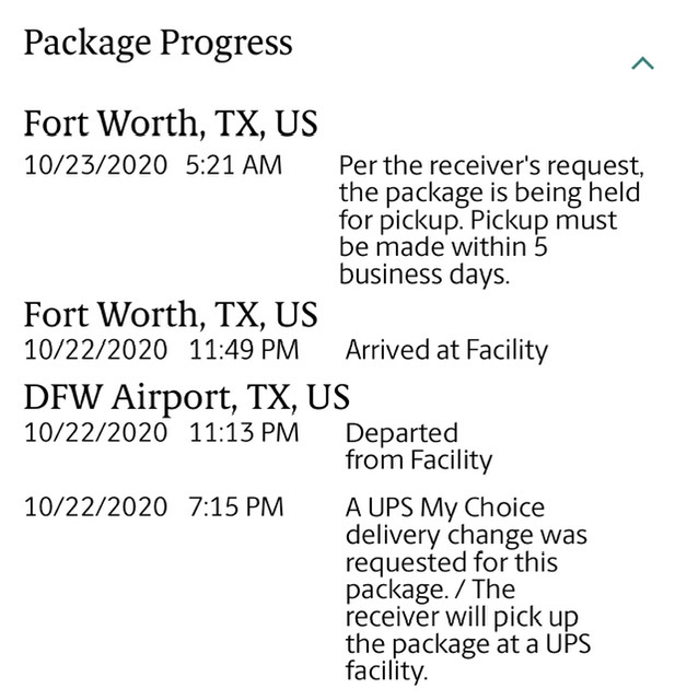 The lady asked for my name and verified the last name. Said it had processed but hasn’t arrived yet...so I’m about to go back inside I ran and grabbed my pumpkin spice.People picking them up from UPS CC - did you tracking info say, Ready for pickup or just being held for customer?