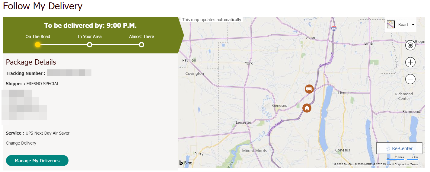 I don’t have “Follow My Delivery” available. Usually I do. Also, no timeframe. Just by 9 PM.
