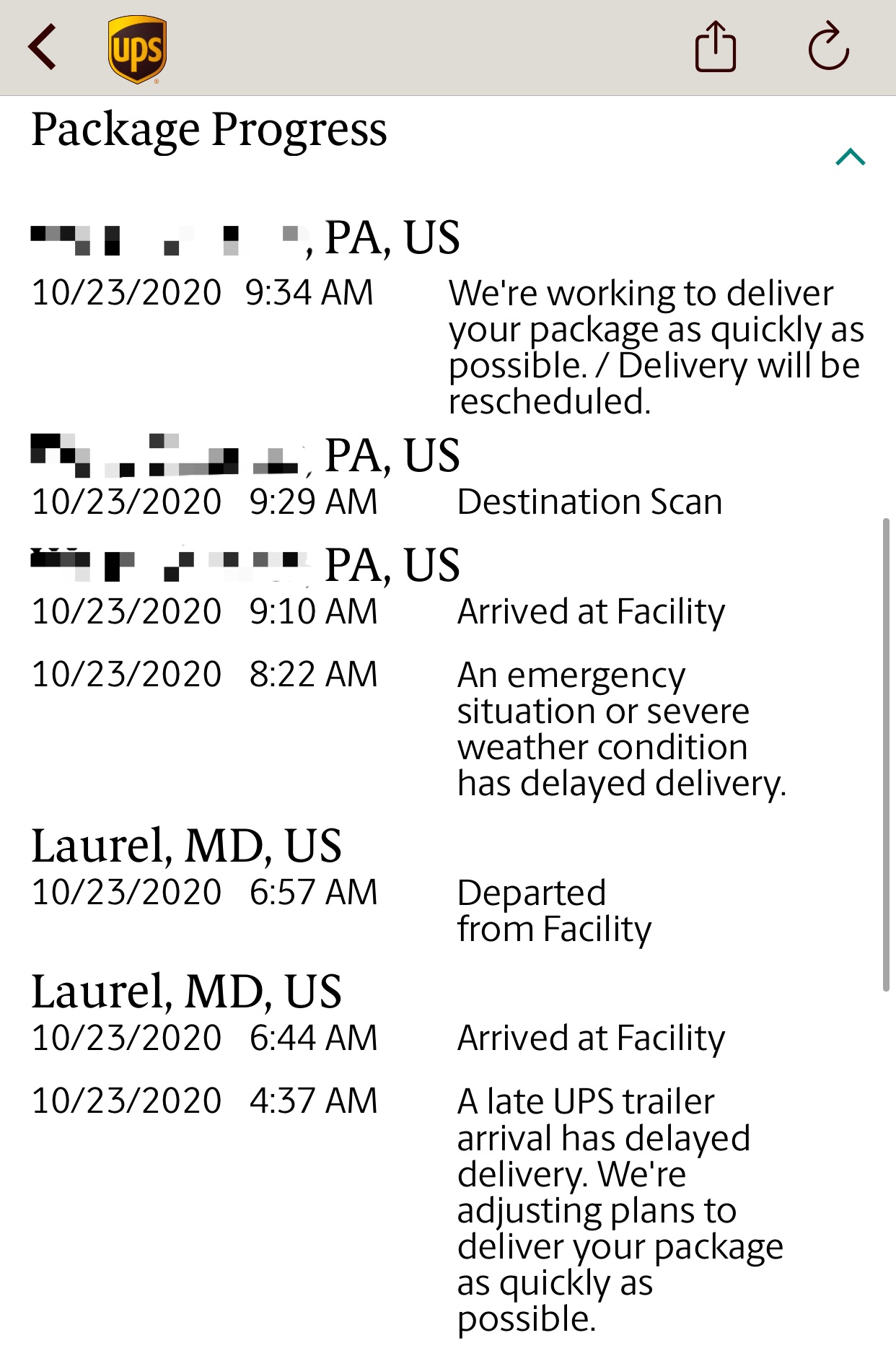 Mine too! For everyone in the Philly area with the problems mine just appeared out of no where 1 minute after i had checked UPS and it was still showing delayed when i heard the truck pull up!!