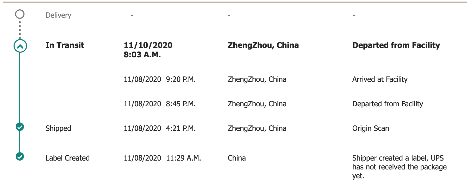 No mine arrived at 9:20 local time like yours mine left also though so wonder if some scans are just not caught up? I have not looked closely but are all the departures ones that arrived at last facility at 8 local? Will have to look back but I bet there are others it’s the 9:20 arrival at facility on 11/08 who got the 11/10 8:03 departure? Hopefully just some scans to catch up it moved so fast once it started that yours is still moving lest hope!!!So it looks like 8AM crew got a departure scan. Congratulations to everyone from 8AM crew. Y’all left the 9:00 crew behind. So long 8AM crew. Y’all get to leave China behind!!!
