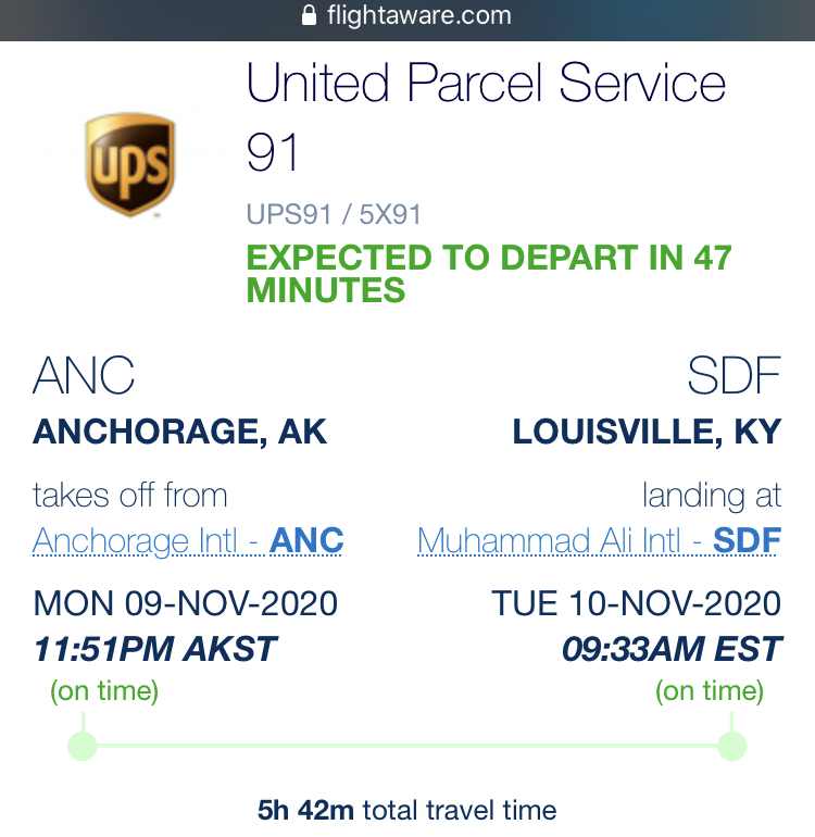 This doesn't make sense.... It's 11 PM in Alaska 11/9 Monday right now. How can it have left Alaska at 12:24 AM on 11/10 Tuesday??? Or is my brain so fried by all this tracking... 🤔 🤪