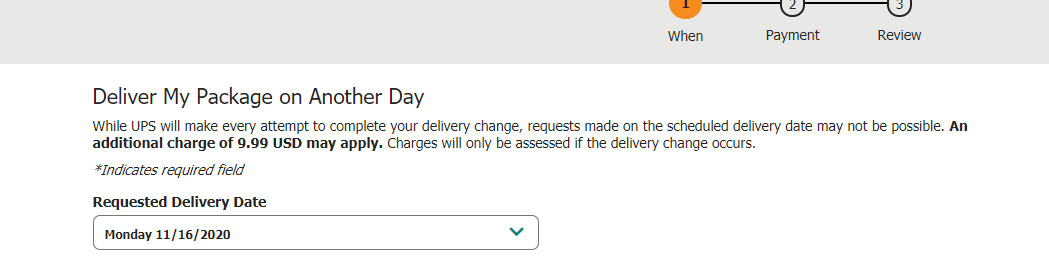 Yea that's for the UPS Store access point, which can delay. I did the UPS Store access point for mine and it was free (I do have premium member) and mine still stays 11/13/2020. Or is it that much just to change the delivery date?Wow for $9.99 I can pay to change my delivery date to Monday the 16th or later!