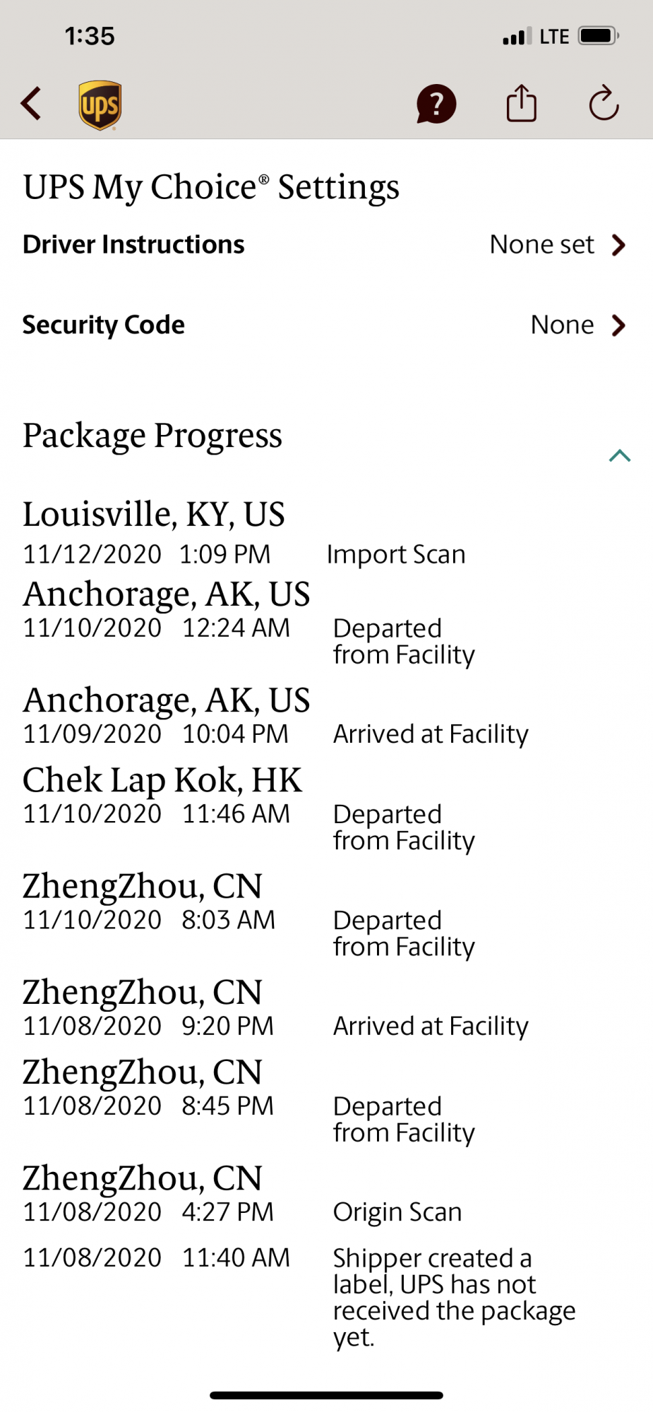 Just left Louisville at 12:05 going to Indianapolis this time around so I guess we won’t get to hang out in Louisville. I’ll be here though til it arrives and gets unboxed tomorrow so no need to say our goodbyes yet. Hope you get your arrival and import scan before the first flight out! Safe travels!