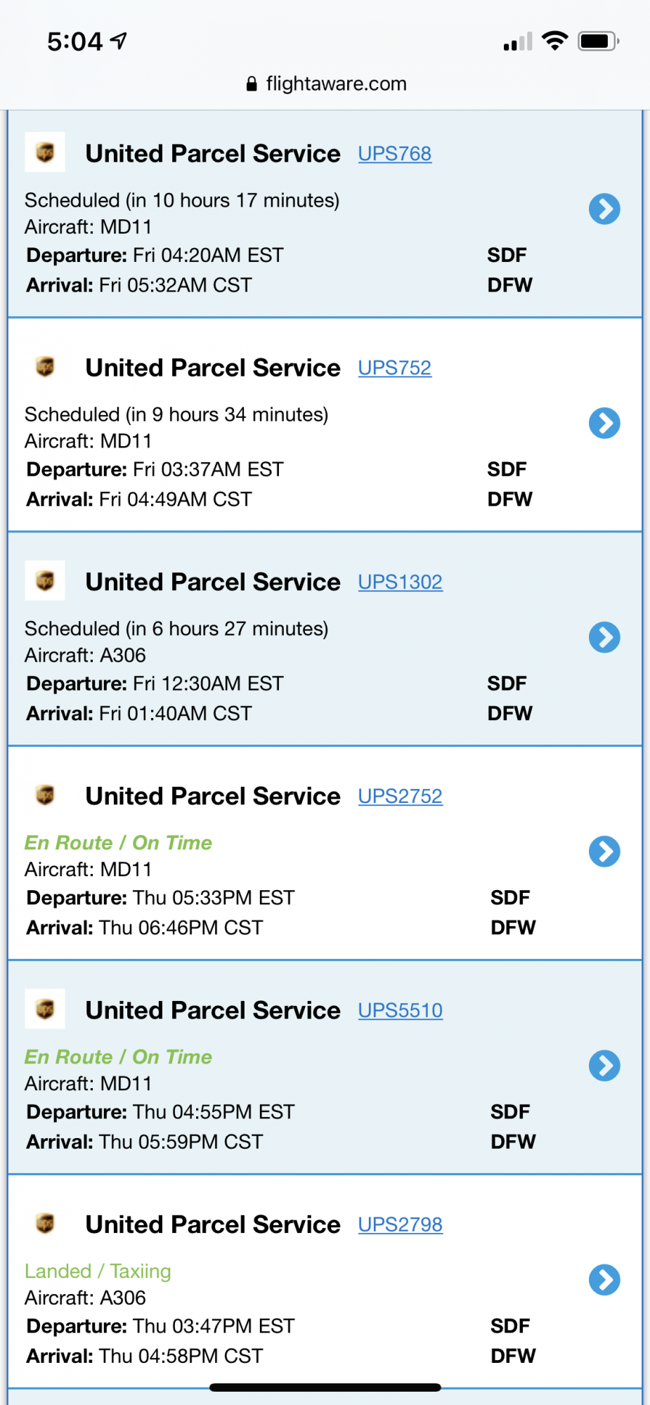 I just got a departure to DFW. It says departed at 5:33.UPS possible flights to DFWView attachment 1662392