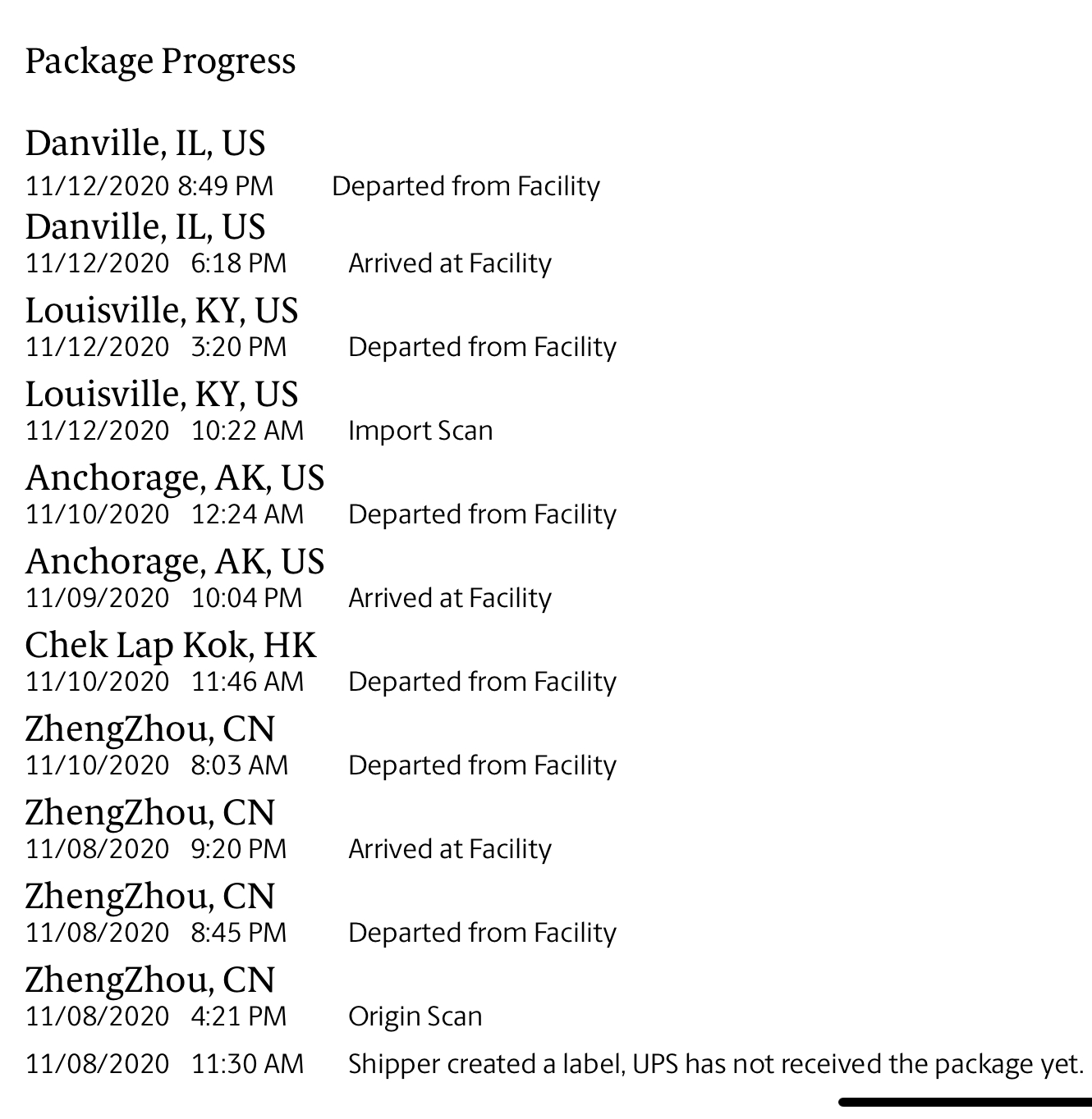 Our Phones are still together as mine has the same departure time from Danville as yours.So phone left Danville probably on to Decatur bypassing Champaign as per usual years to main Decatur hub before truck gets broken up to smaller loads and one comes back to the Urbana UPS like usual years LOL. I would be surprised to see it stay at Urbana but might be surprised will know in a hour or two