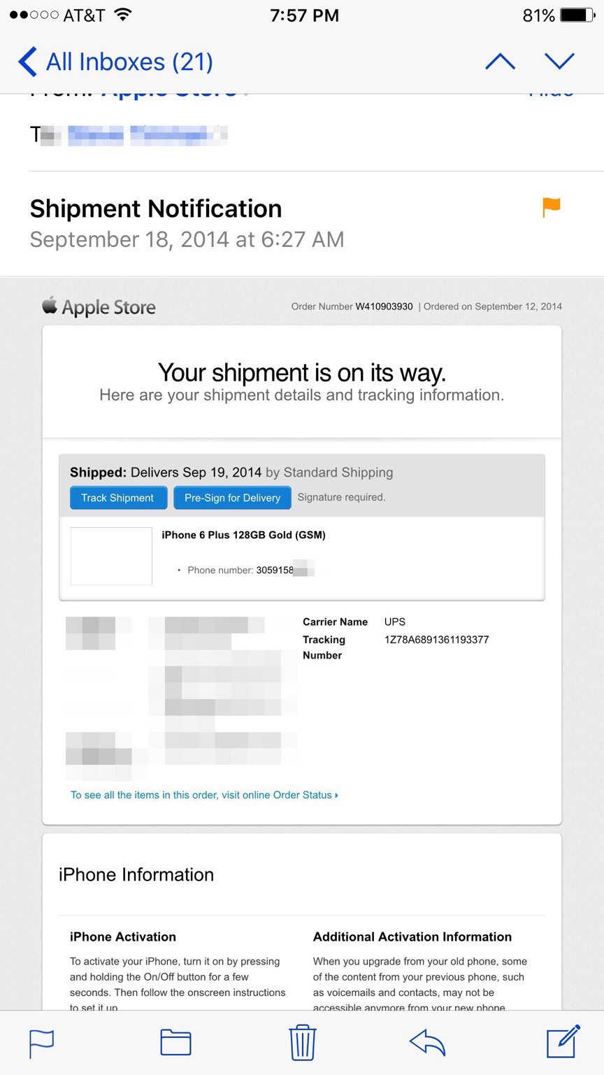 Thank you. That makes sense.Nobody's phones show as shipped on Apple order status. People are getting tracking from MyUPS or tracking by reference.