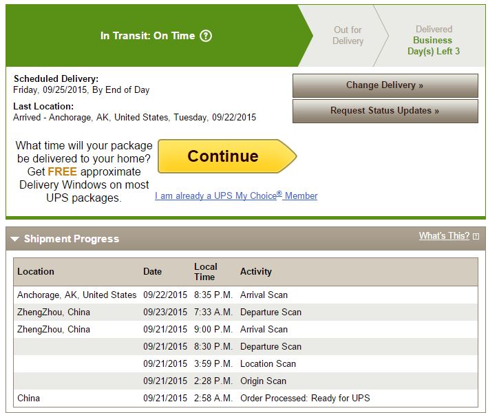 I have no clue man , mine says it arrived at Anchorage already .Um, it can't be 8:30 in Alaska yet, it's only 8:05 on the West Coast.