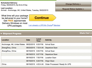 China 09/19/2015 8:08 A.M. Order Processed: Ready for UPS