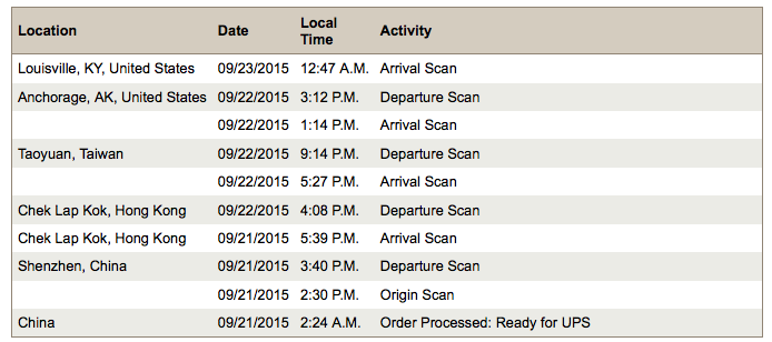 China 09/19/2015 8:08 A.M. Order Processed: Ready for UPS.