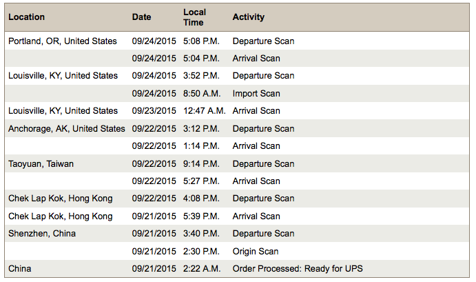 Tracking by Reference # brings up the same tracking page as the other two. There are two packages in the shipment, same weight, but three reference numbers.