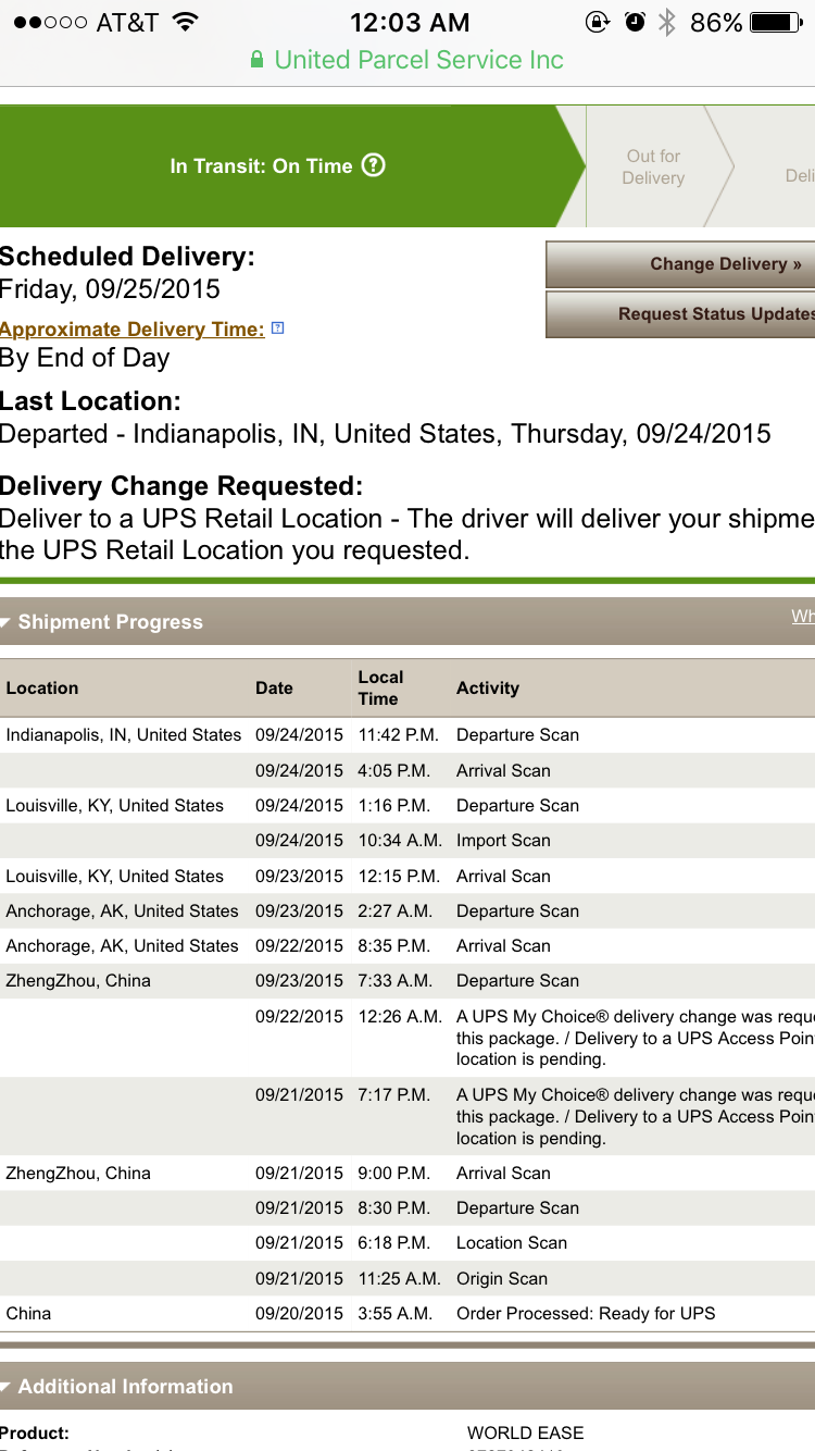 My Rose Gold VZW 64GB iPhone 6s Plus is currently in Sylmar, CA most packages for me go to Ontario, CA then to Baldwin Park, CA hub to be delivered to me in the San Gabriel Valley. It should move to Baldwin Park, CA later on tonight. My iPhone traveled with quite a few people's iPhone. It appears from flightaware that my iPhone flew on Atlas Air from China to Anchorage, Alaska, then from Alaska to Kentucky. Then it went from Louisville to Burbank, CA where it ended up in Sylmar,CA. My husband is UPS Driver and UPS will be working at full capacity tomorrow delivering our iPhones. At his hub people were not allowed to take vacations for the past two weeks and certainly no one can call in sick tomorrow unless you are in ER. VZW renewed my contract on 9.21.15 for two years. I am doing a swap with another line that still has unlimited data. It has been fun following this thread and hope everyone enjoys their iPhones tomorrow!!!