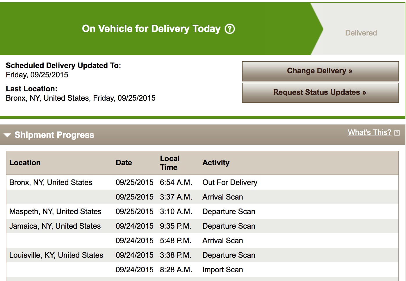 What was the final status on your tracking?Just picked up my phone from the UPS hub!