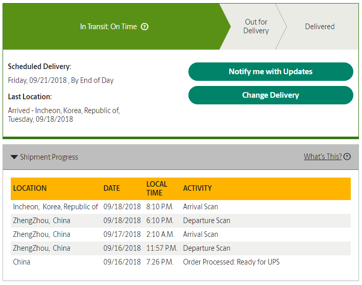 I'll wait to see if that changes once they are officially 'shipped' and call UPS if I still have a problem.