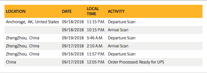 According to UPS, I'm still sitting in ZhengZhou (2:10 crowd). However, I'm not surprised.