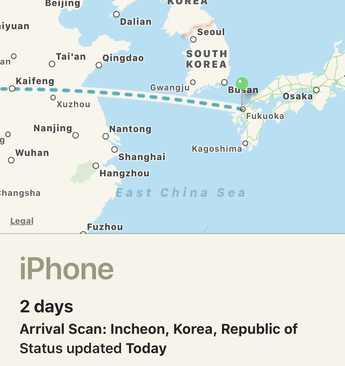 Mine is sitting in South Korea but Deliveries thinks it's in Japan. Maybe its on a day cruise. Not gonna complain. It's moving at least. Now if I can only get Amazon to leave deliveries on my doorstep I'll be in good shape.Sitting in S. Korea with you guys.