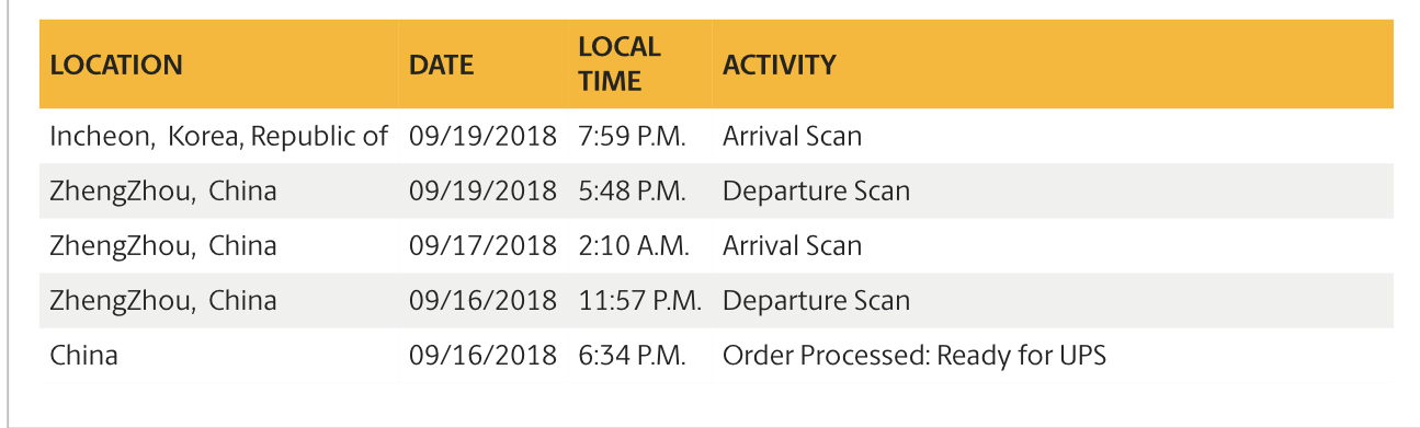 My last scan is in Incheon as of 9/29/18 at 7:59P.