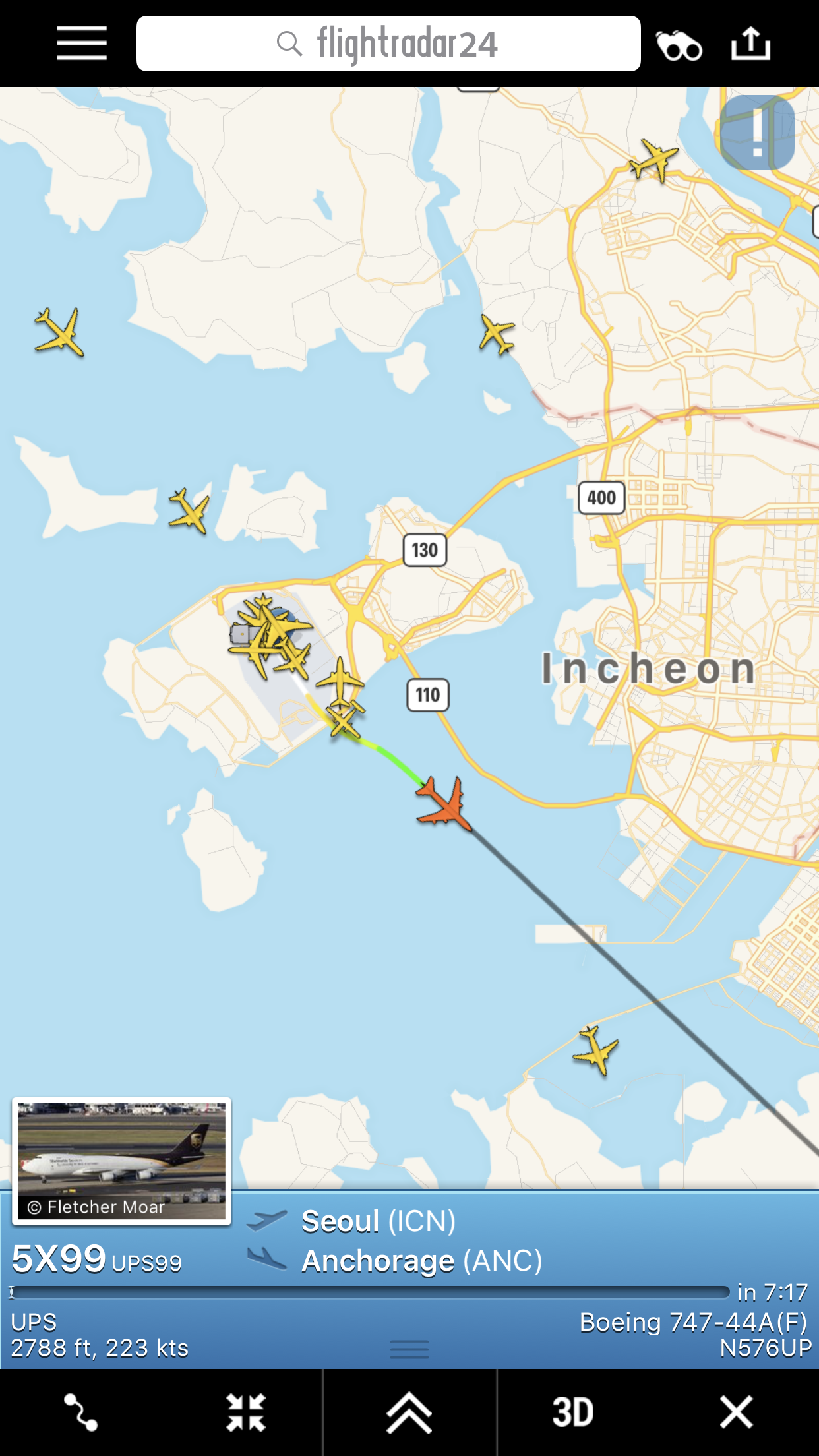 Only been up for 8 mins probably wont get departure updates from it for another few minsLatitude 37.3241 Longitude 127.1495 11,000 feet and climbing. ETA ANC 12:39PM Local