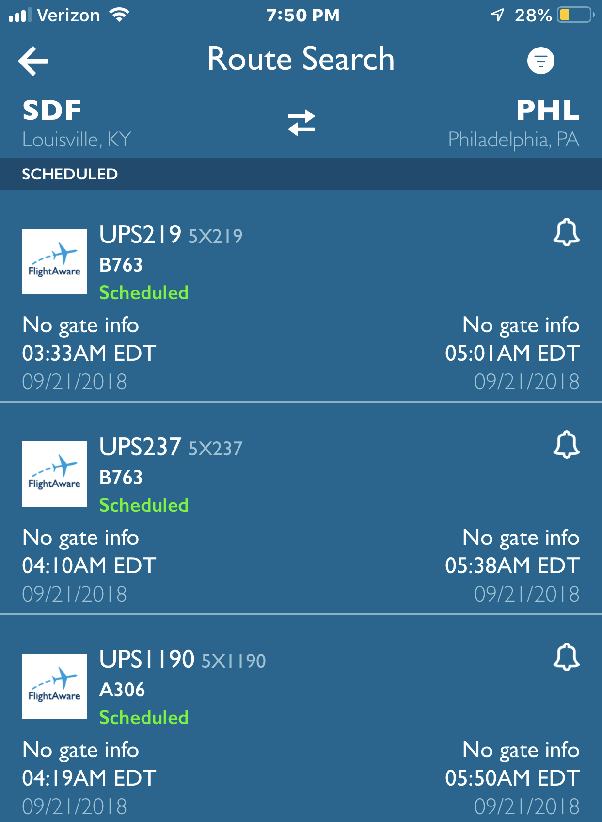 Those r the only ones I can find that havent left yet. Needs to hit Lawnside nj facility to get on truck for my delivery. Really close callKind of interesting, can't find a flight leaving Louisville heading to the greater Philadelphia area on flightaware...