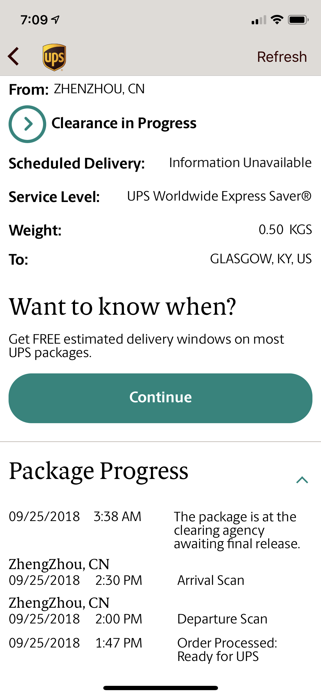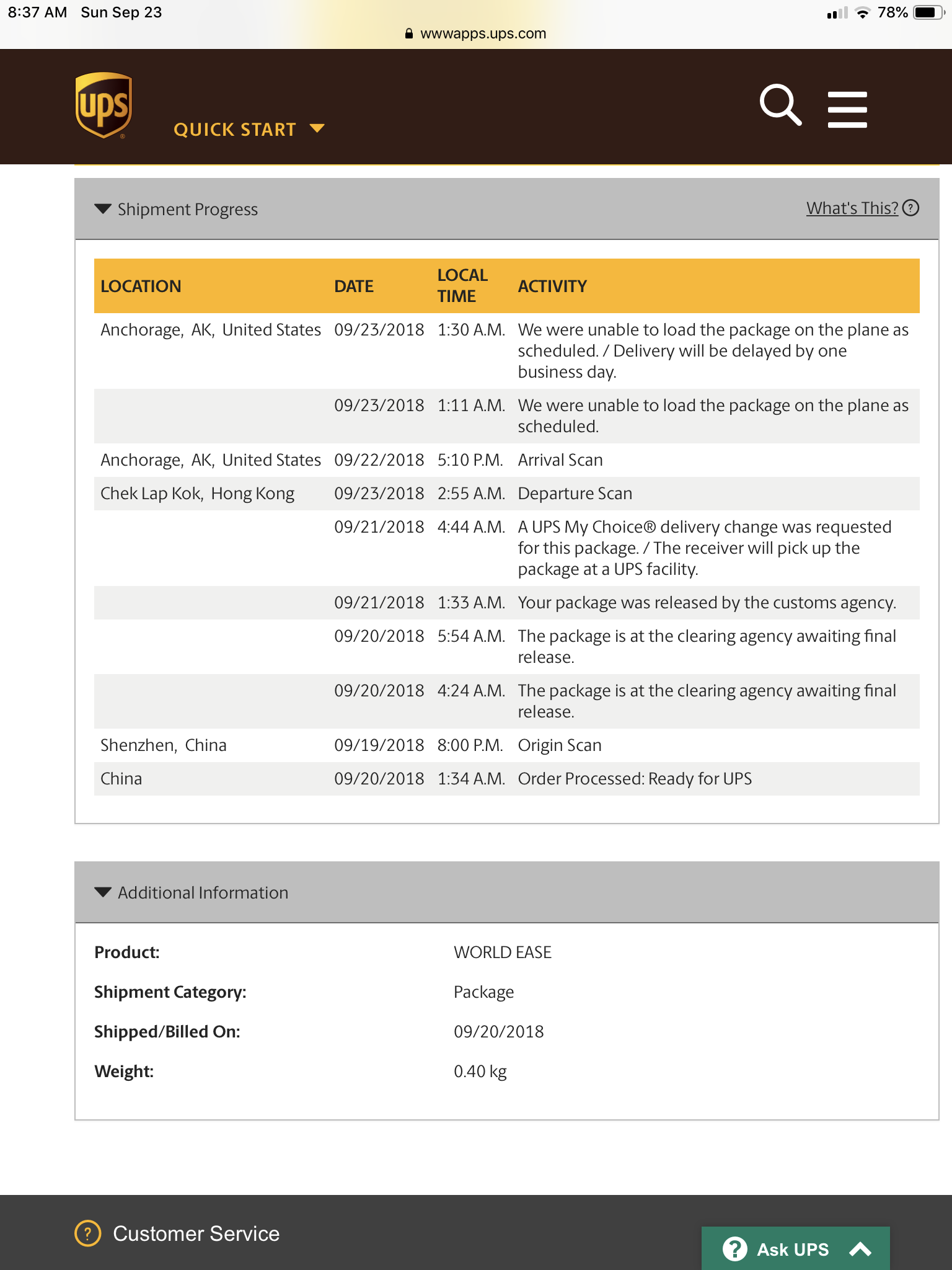 Was your shipment like this, mine was supposed to arrive today, but UPS never updated it until today. This is really weird.Complete weirdness with my order. It was showing as delayed and in China this morning, and delivered via UPS.