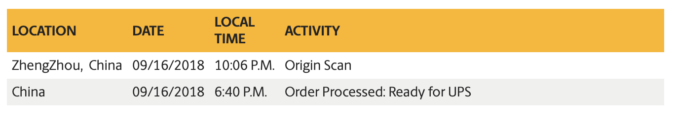 I also just got a departure scan. Leaving from ZhengZhou, CN 9-16-18 11:57 pm so everything is fine!I just got a departure scan on mine so looks like everything is hopefully running smoothly so far.