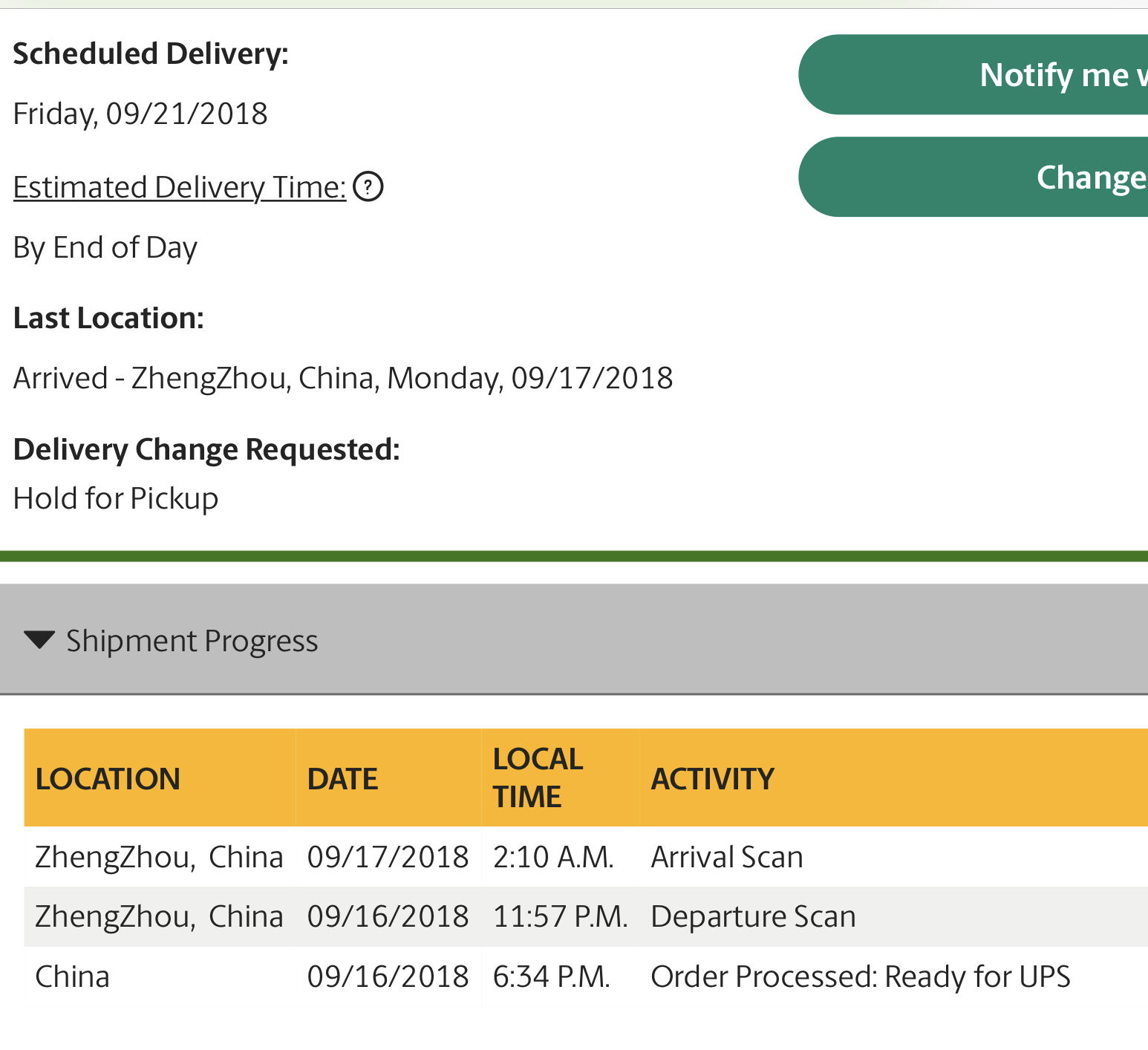 Just out of curiosity, is anyone else not getting any tracking information on accessories? Mine and my wife’s iPhones have shown up in UPS My Choice, however the tracking number for my iPhone XS Max case from Apple is coming up with nothing. UPS acts like it does not recognize it, and I received it in an email from Apple saying it had shipped. Is anyone else seeing that regarding accessories that I assume are already state side?