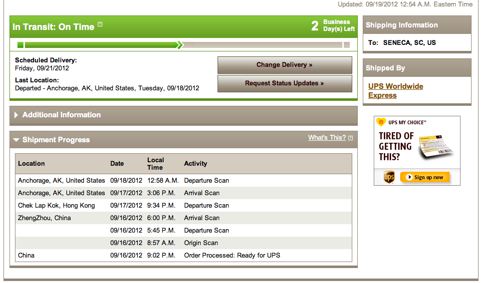 China 09/16/2012 9:43 P.M. Order Processed: Ready for UPS